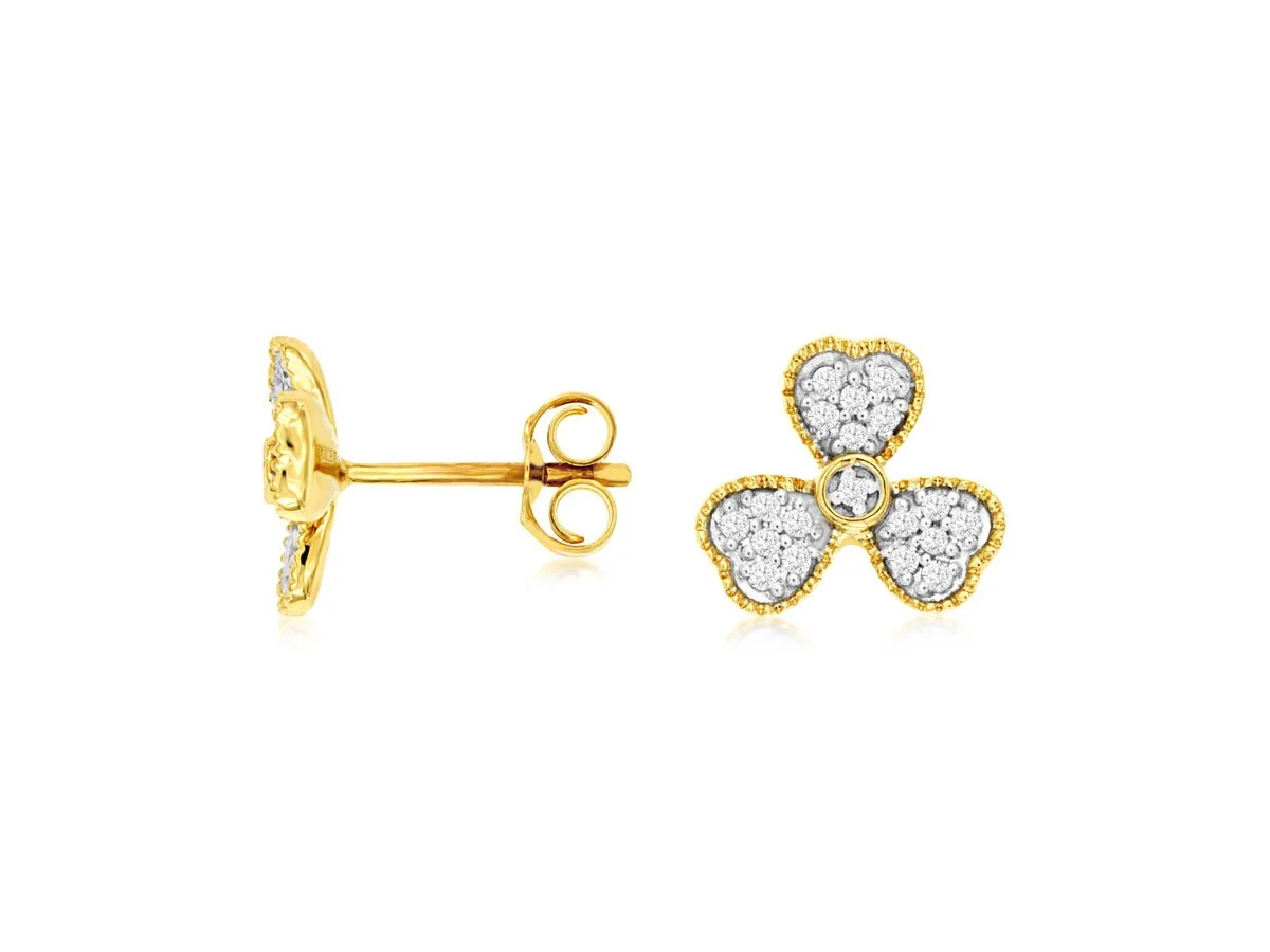 14k Yellow Gold Diamond Crescent Moon Stud Earrings