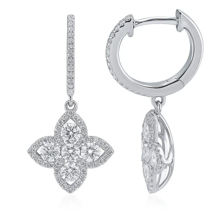18 Karat Yellow Gold Diamond Cluster Leverback Earring